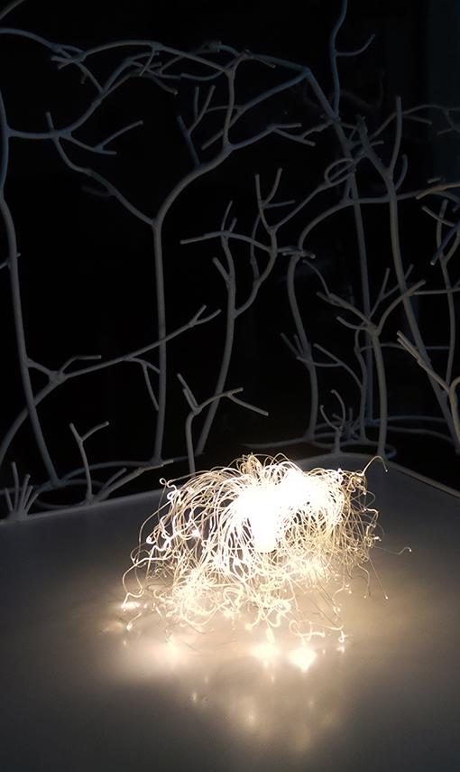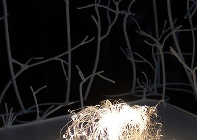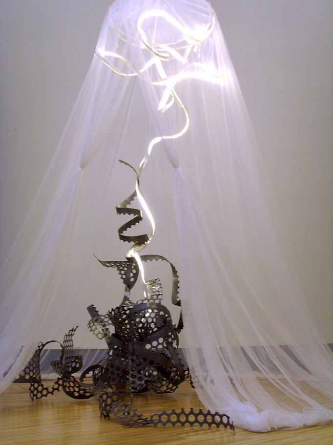 En mi trabajo esta necesidad de aprender, conocer, crear, toma la forma de “juegos”. Pienso en ellos como expresiones libres de mi pensamiento y al mismo tiempo actos conscientes de compromiso con el mundo multicultural que vivo. “Juegos rituales”, donde puedo integrar mis pensamientos de Oriente y Occidente, cuerpo y alma conectada mediante una ceremonia de luz, como un elemento real y virtual, que se trata de “mi yo meditado”, en una identidad física del objeto contemplado y la conexión mental con el mundo interior.